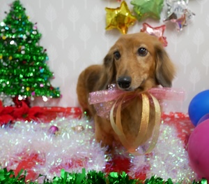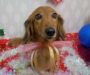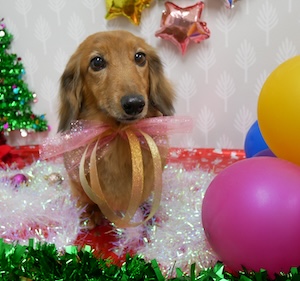 ロングヘアードミニチュアダックスフンドの マハロちゃん。