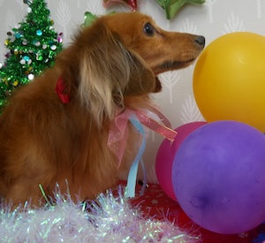 ロングヘアードミニチュアダックスフンドの コロ助くん。