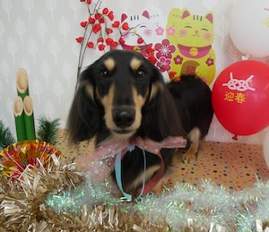 ロングヘアードミニチュアダックスフンドの あずきちゃん だいずくん。