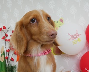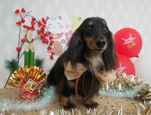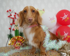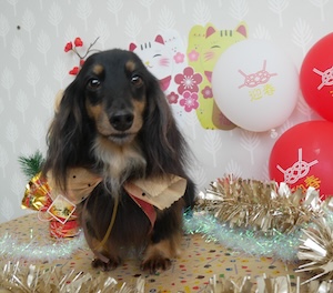 ロングヘアードミニチュアダックスフンドの チョコくん レートくん。