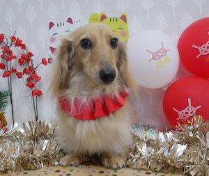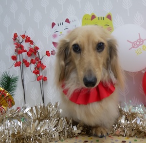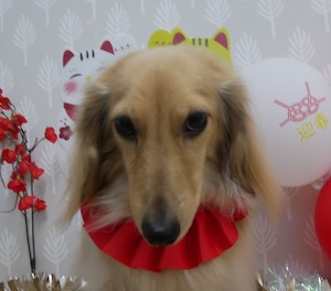 ロングヘアードミニチュアダックスフンドの レオちゃん。
