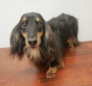 ロングヘアードミニチュアダックスフンドの チョコくん レートくん。