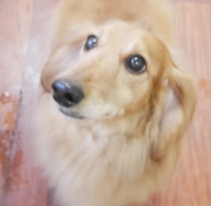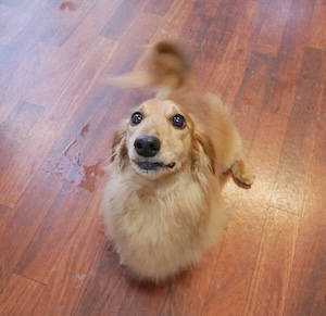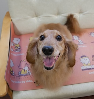 ロングヘアードミニチュアダックスフンドの パルメくん。