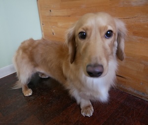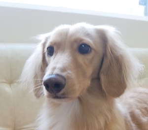 ロングヘアードミニチュアダックスフンドの コトくん。