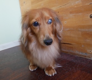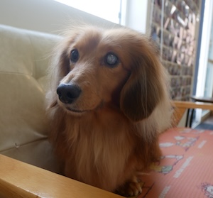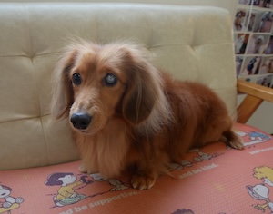 ロングヘアードミニチュアダックスフンドの コロ助くん。