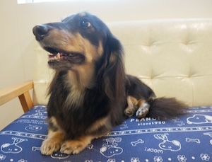 ロングヘアードミニチュアダックスフンドの 花菜ちゃん。