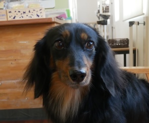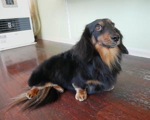 ロングヘアードミニチュアダックスフンドの チロルちゃん。