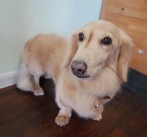 ロングヘアードミニチュアダックスフンドの ダイスケくん。