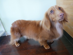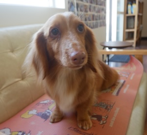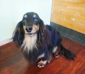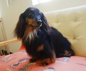 ロングヘアードミニチュアダックスフンドの チョコくん レートくん。