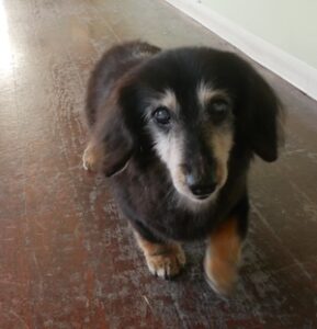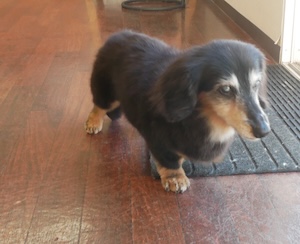 ロングヘアードミニチュアダックスフンドの ナナちゃん。