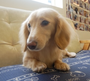 ロングヘアードミニチュアダックスフンドの ゆきちゃん。