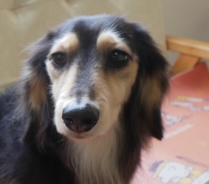 ロングヘアードミニチュアダックスフンドの ゴン太くん。