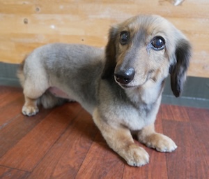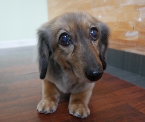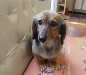 ロングヘアードミニチュアダックスフンドの モモちゃん。