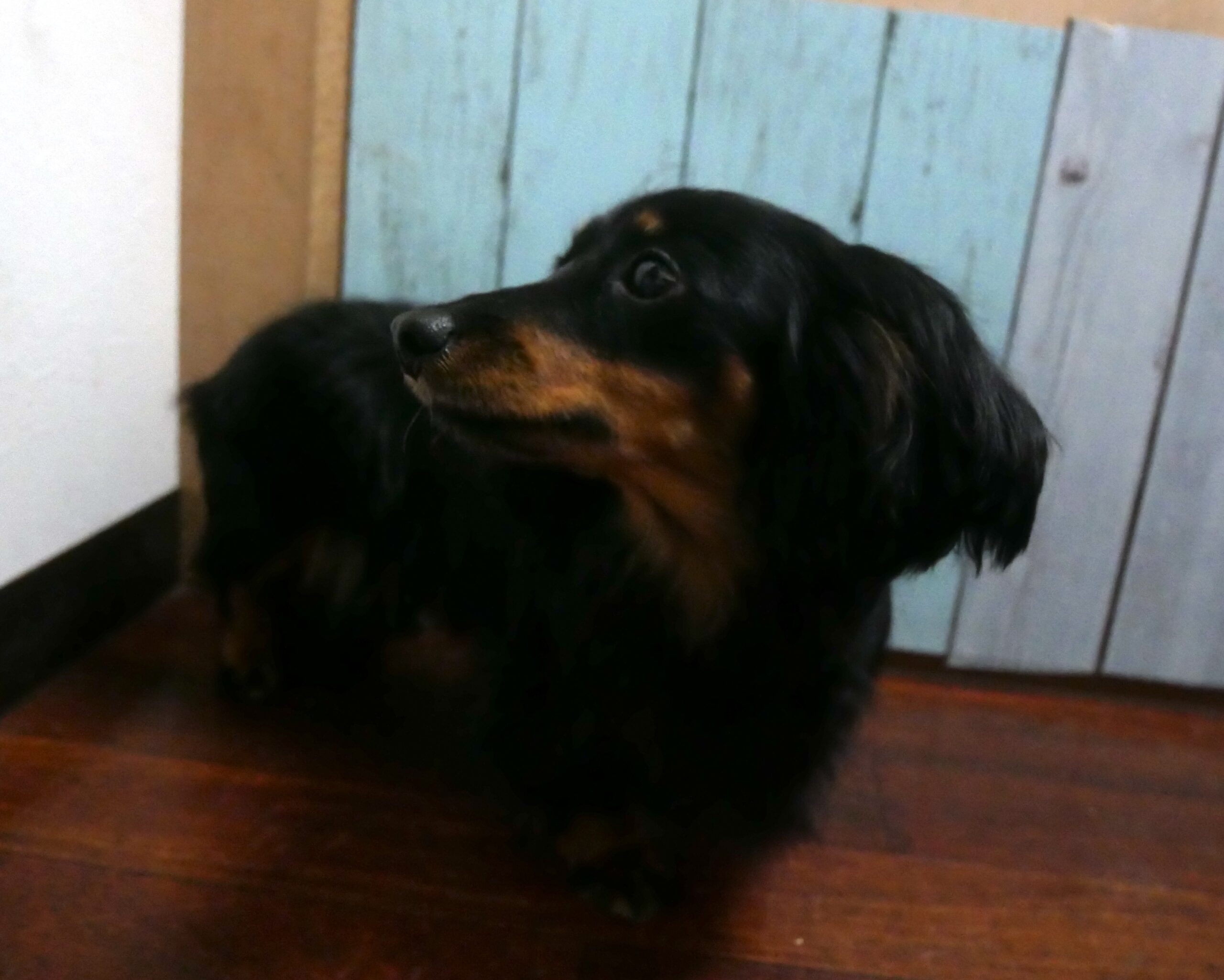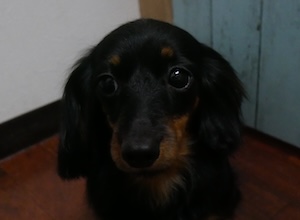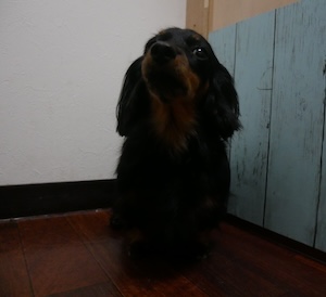 ロングヘアードミニチュアダックスフンドの もみじちゃん。
