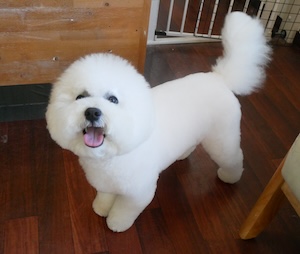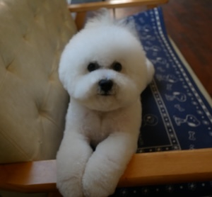 ビションフリーゼの ちゃちゃまるくん。