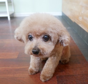 トイプードルの チョコちゃん。