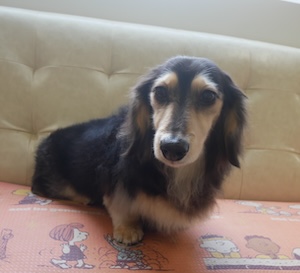 ロングヘアードミニチュアダックスフンドの ゴン太くん。