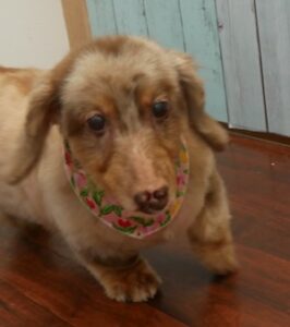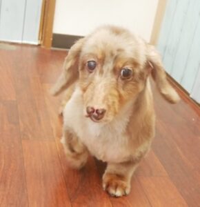 ロングヘアードミニチュアダックスフンドの マロンくん。