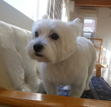 ウエストハイランドホワイトテリアの うるるちゃん きららちゃん。