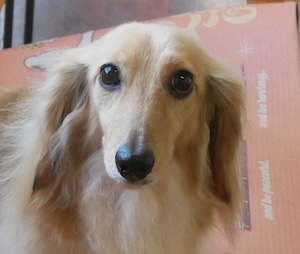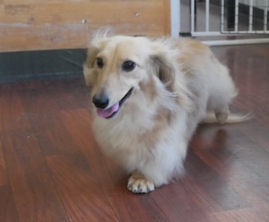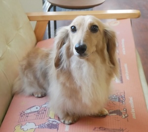 ロングヘアードミニチュアダックスフンドの レオちゃん。