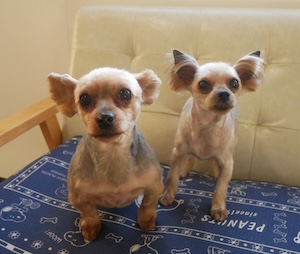 ヨークシャテリアの さくらちゃん 小梅ちゃん。