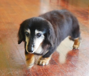 ロングヘアードミニチュアダックスフンドの ナナちゃん。
