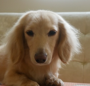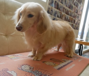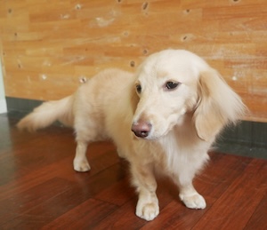 ロングヘアードミニチュアダックスフンドの ゆきちゃん。
